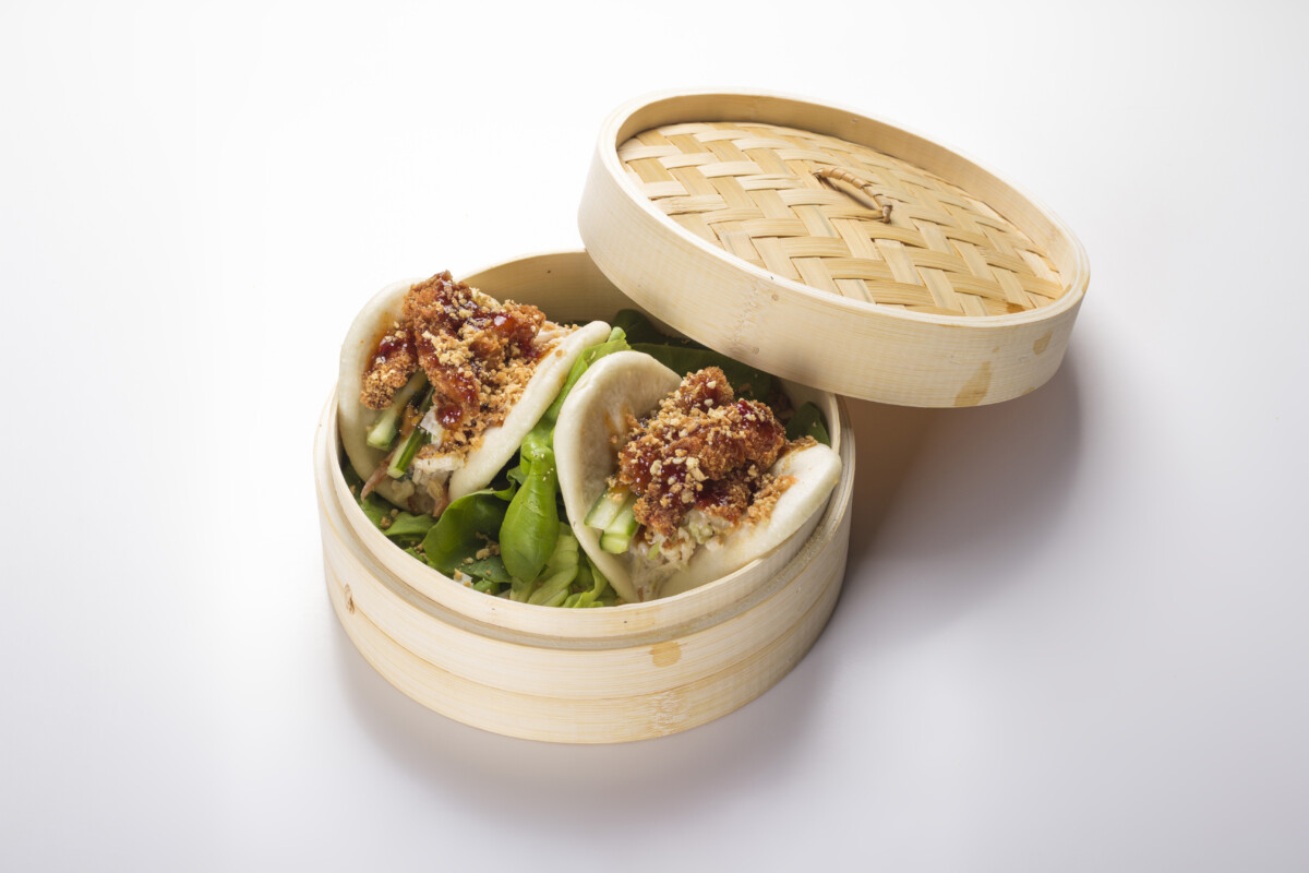 Fried Japanese chicken, Kimchi slaw vegetables, sweet chili sauce with honey and homemade cucumber pickle. Crushed nuts and fried onions on top. (2pcs)